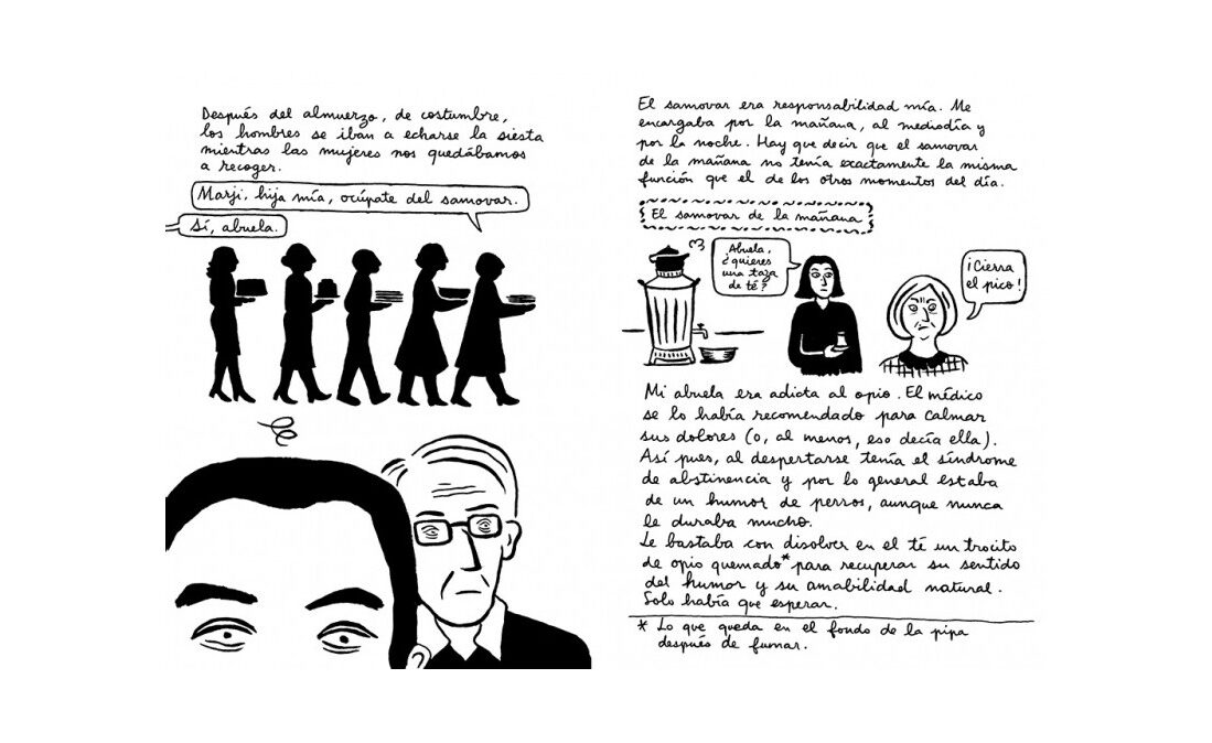 Te invitamos, también, a participar en una tertulia de mujeres alrededor del samovar, el té y las pastas. Es la mesa que Marjane Satrapi dibuja en Bordados, una maravillosa novela gráfica publicada por primera vez en 2003 y que todavía hoy es considerada un clásico del feminismo. Bordados es una invitación a mirar por el agujero de la puerta, a entrar en la intimidad de estas mujeres que charlan, a espaldas de sus maridos, sobre sus relaciones sexuales, las amantes de sus parejas, sus propias aventuras, sus deseos y frustraciones, sin pelos en la lengua y con una franqueza que quizá no imaginábamos. Tampoco para ellas ha cambiado demasiado la cosa, pero ahora no tienen tanto miedo a expresar que desean tomar las riendas de su vida. Nada menos de lo que merecen. Satrapi dibuja en blanco y negro la vida llena de matices y colores lo que significa ser mujer en un país islámico.