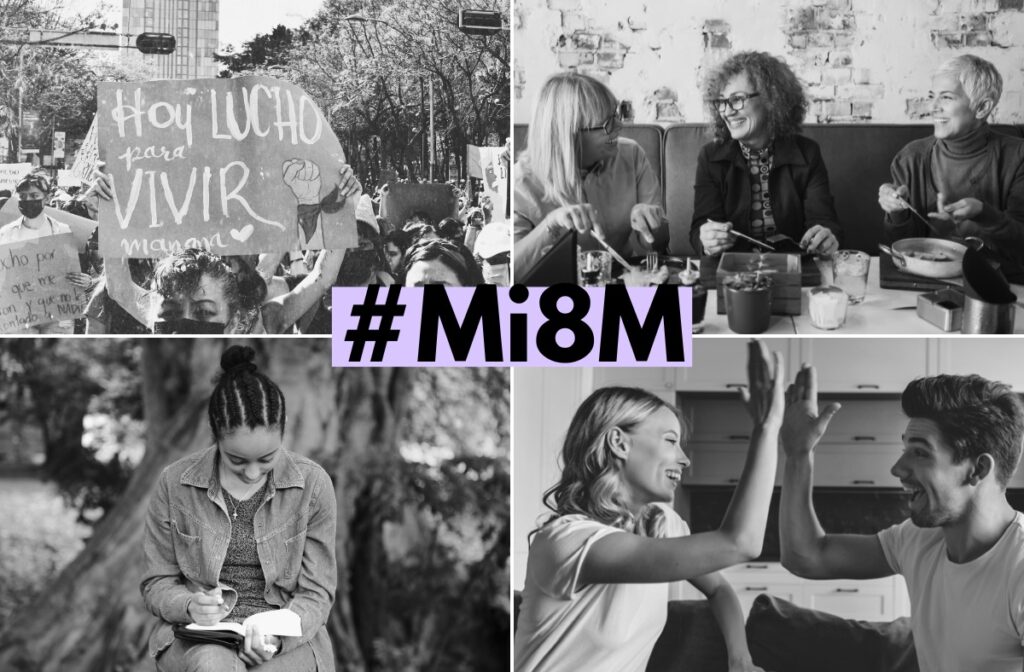 ¿Y cómo se puede contribuir al 8M? Algunas ideas: participando de forma activa en alguna de las numerosas concentraciones que se organizarán; dándole difusión a proyectos, películas, libros, documentales… que promueven la equidad de género o estén protagonizados por mujeres; yendo a ver una película, obra de teatro… protagonizada o dirigida por una mujer; compartiendo datos de fuentes fiables que pongan de manifiesto las brechas de género que todavía existen; pasando tiempo de calidad con las mujeres de tu vida o haciendo alguna actividad que te relaje o te ayude a cargar las pilas, que te recuerde lo importante que es cuidarnos.