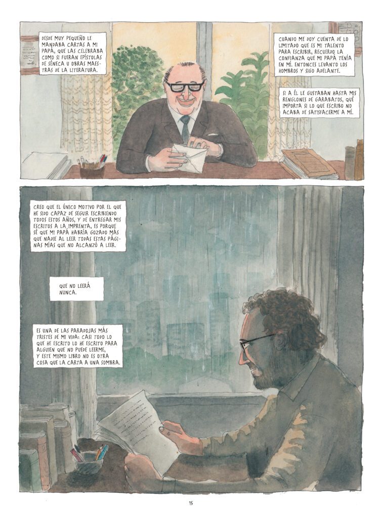 La obra de Tyto ha sabido extraer la esencia de la familia Abad-Faciolince, ha sabido, con su maestría e intuición, otorgarle una nueva vida, dar brillo a esta brillante y dolorosa historia familiar. Quisimos saber qué otra historia le gustaría llevar a la novela gráfica: “Como novela sí que hay una que llevaba tiempo pensando del escritor Luis Sepúlveda, fallecido el pasado año por coronavirus. Tiene una novela corta, Un viejo que leía novelas de amor, que he tenido muchas veces en mente. Sería bonito hacerlo: contiene muchas cosas en muy pocas páginas y facilidad para adaptarla porque, en vez de resumir, puedes alargarlo, dejar más espacio, más tiempo y poner más de tu parte”.