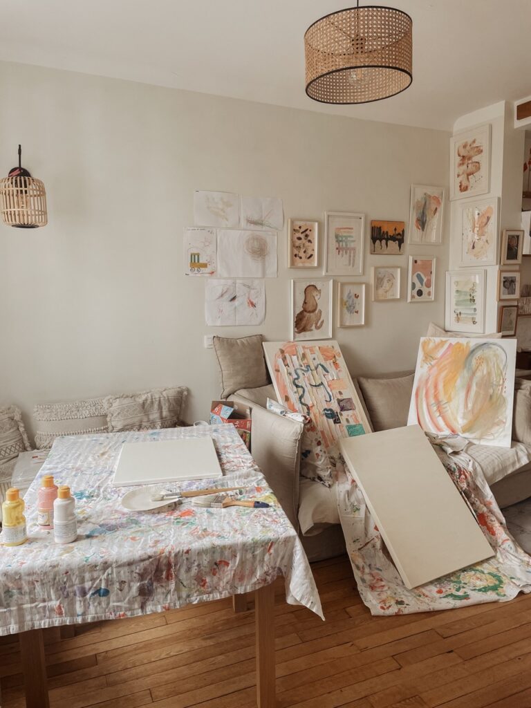 Sí, este proyecto nació de la necesidad de capturar la profunda transformación que estaba experimentando: estaba embarazada y tenía ya un hijo de ocho meses, que pintaba junto a mí. Sentía que quería plasmar todas las facetas de la maternidad: una maternidad real y no idealizada, que abarca todas las emociones que a veces se pasan por alto. Quería mostrar cómo, a pesar de los momentos difíciles, el hecho de ser madre es profundamente maravilloso.