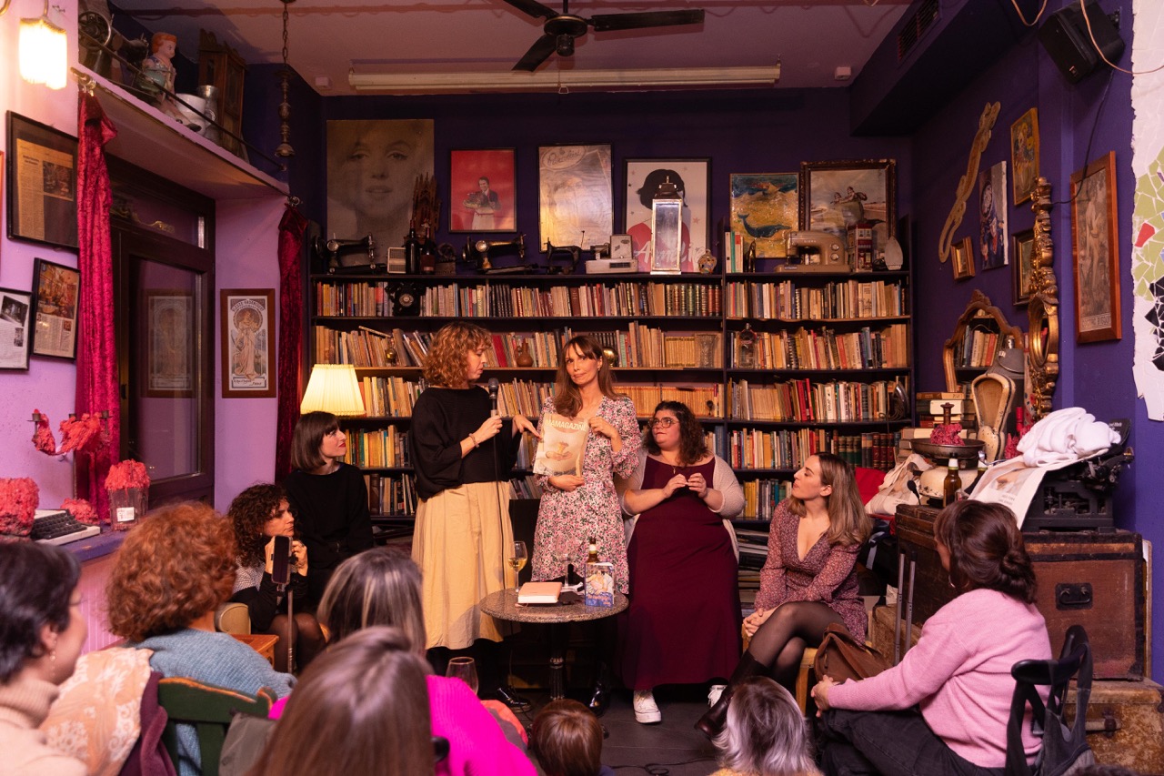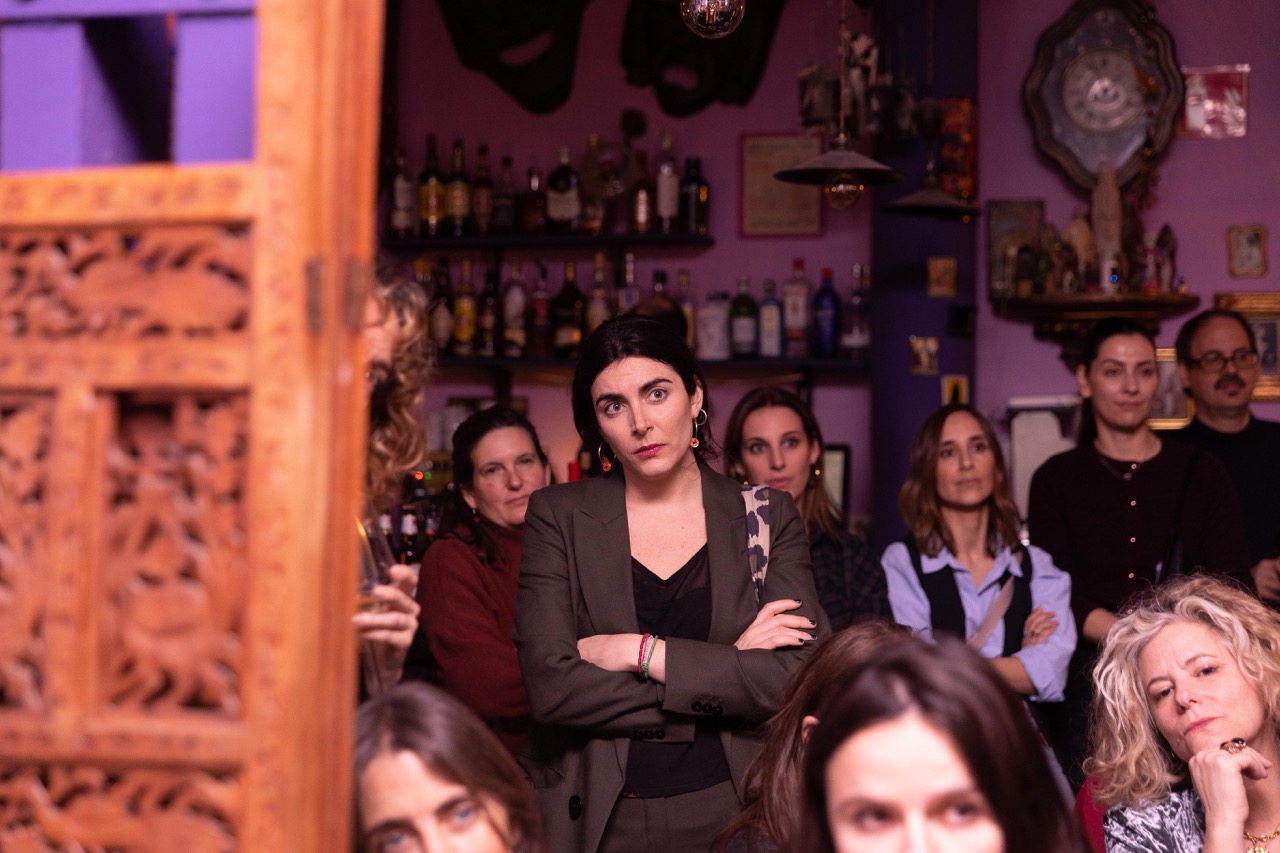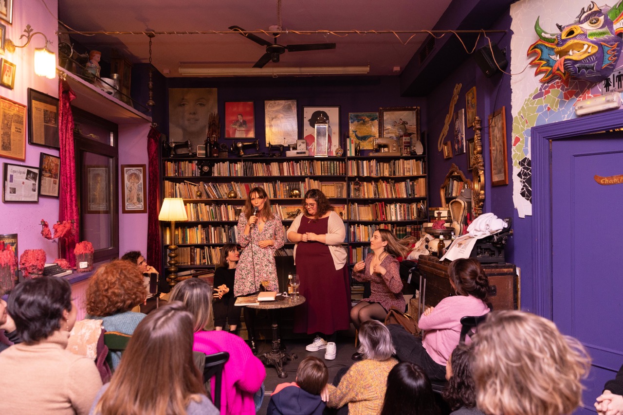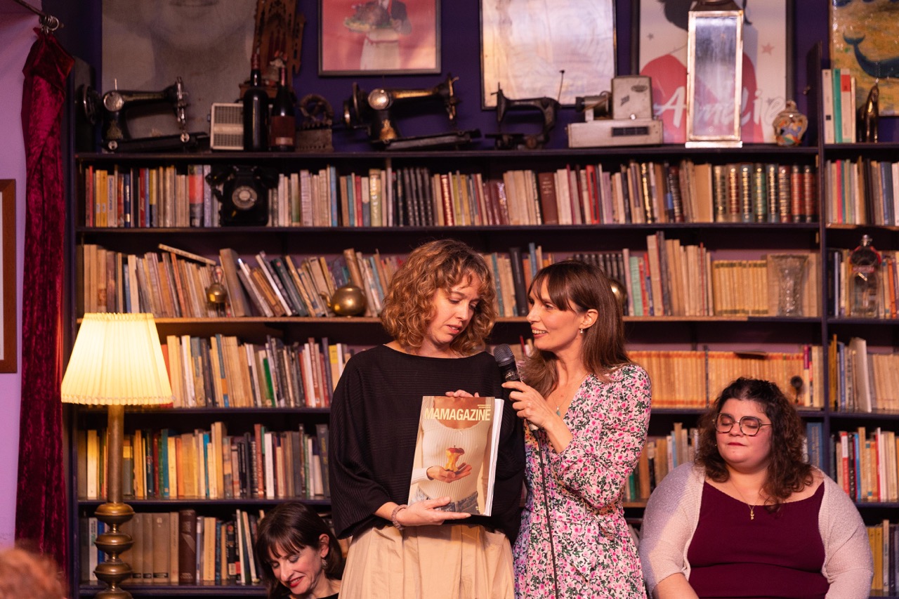 Con el aforo completo y gente esperando en la puerta, la actriz y escritora Irene Ferradas abrió la velada con un monólogo sobre la lactancia titulado Por mi culpa e incluido como texto en este número de la revista.