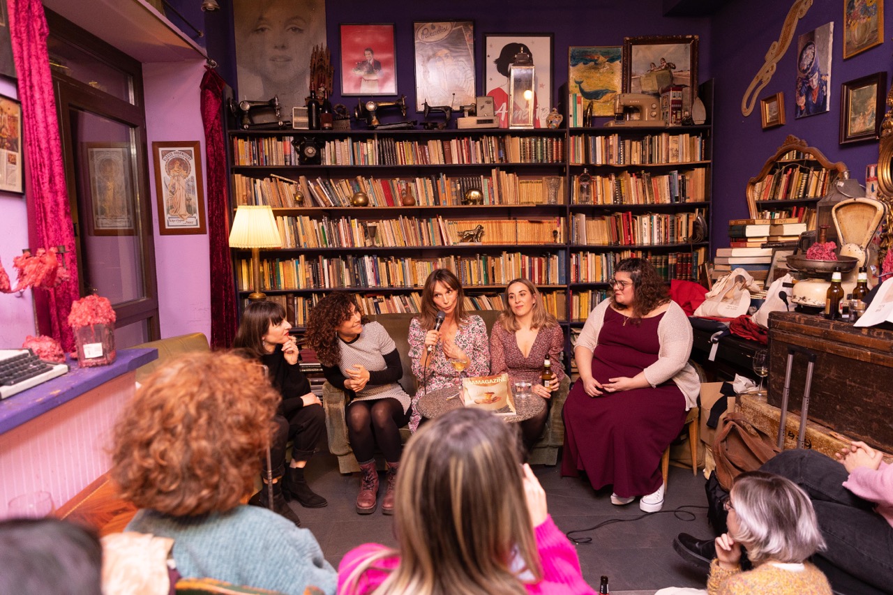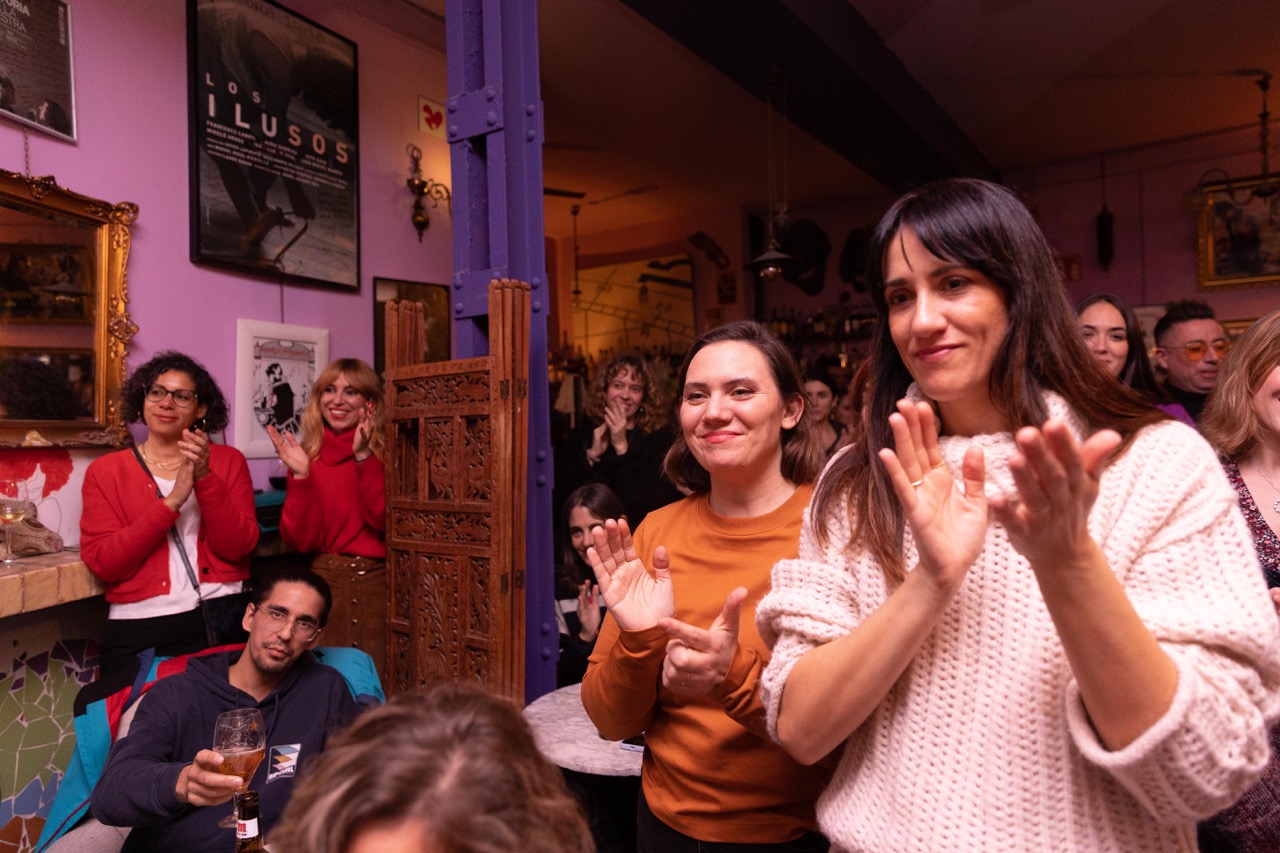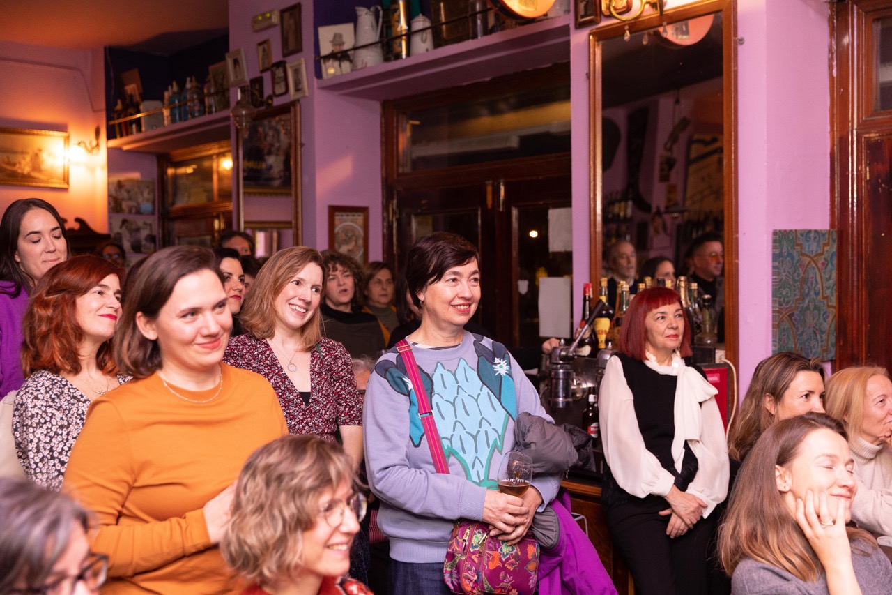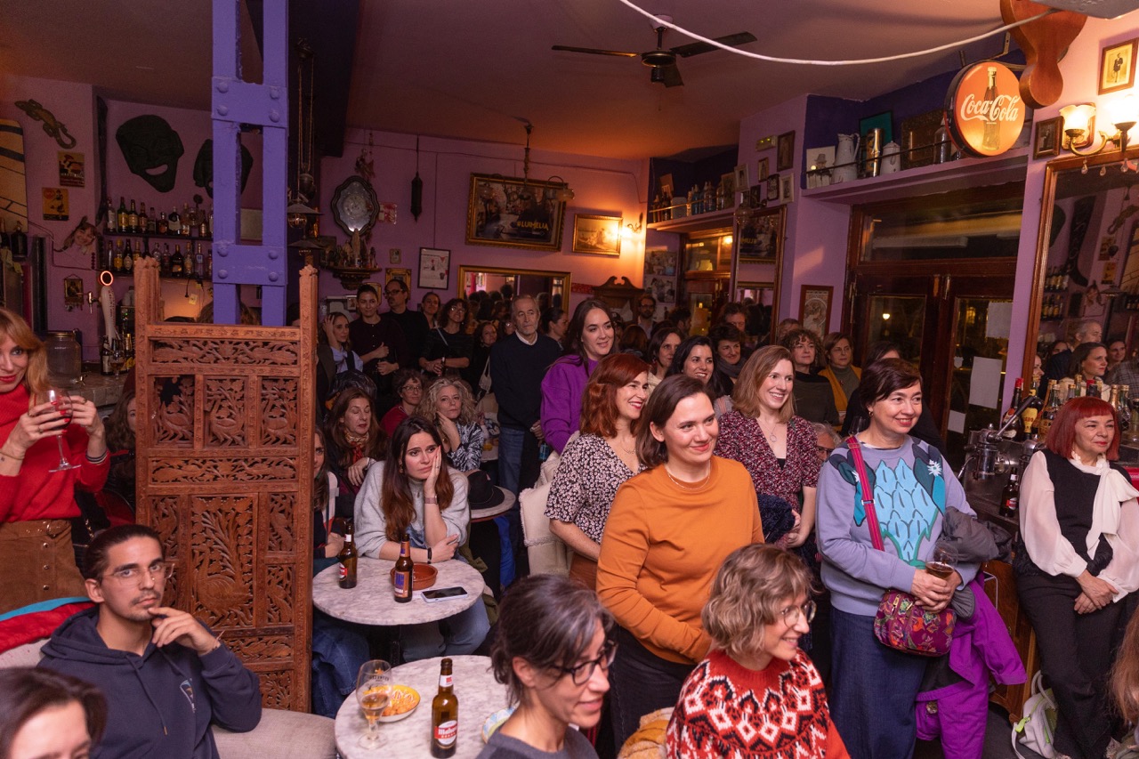 Con el aforo completo y gente esperando en la puerta, la actriz y escritora Irene Ferradas abrió la velada con un monólogo sobre la lactancia titulado Por mi culpa e incluido como texto en este número de la revista.