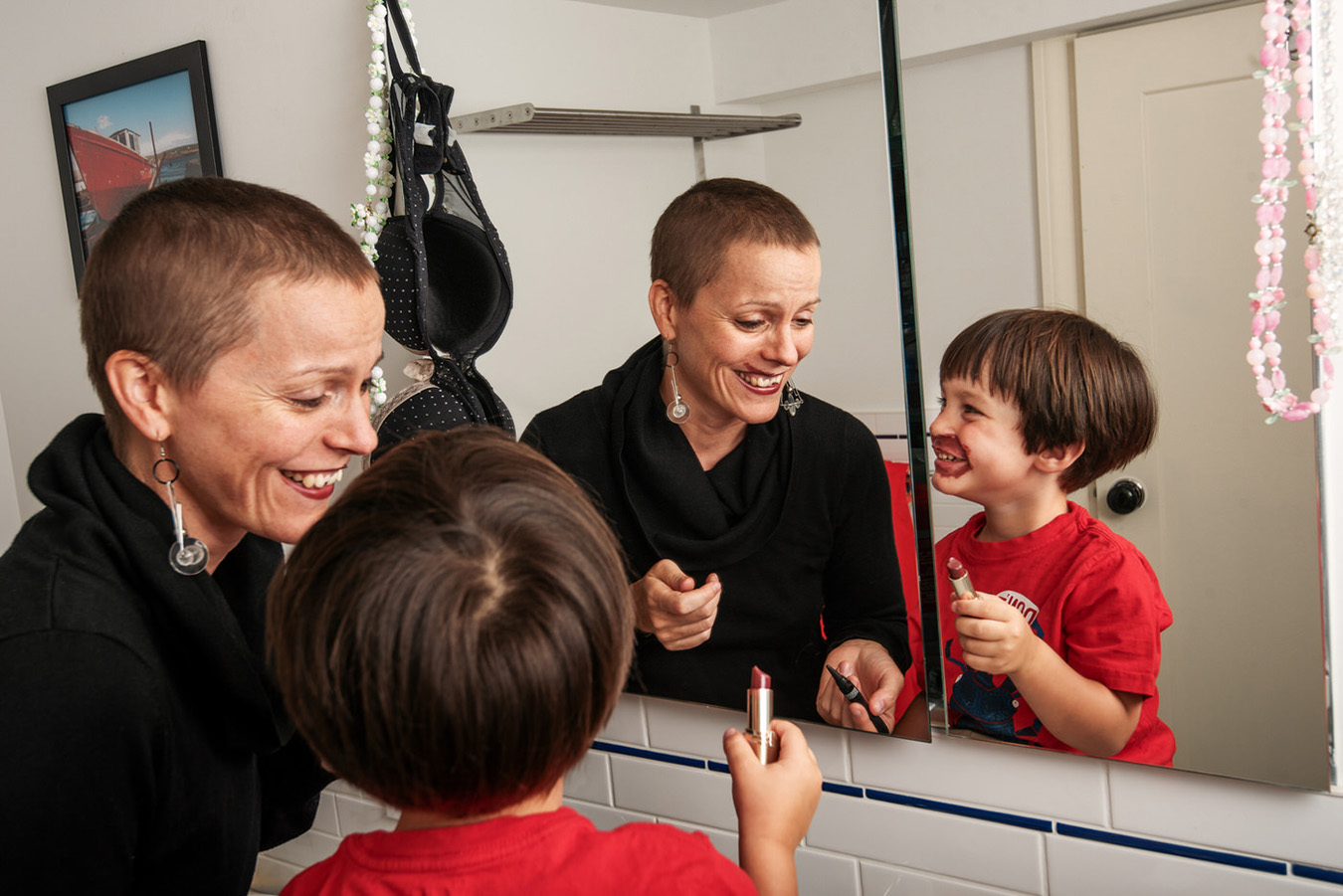 Anna: La fotografía se convirtió en una forma de encontrarme de nuevo, de reclamar mi voz cuando sentía que me estaban quitando tanto. Como madre, quería mostrar que aún estaba presente, incluso cuando mi cuerpo cambiaba. Al principio, comencé a hacerme autorretratos como una forma de procesar el verme bajo una nueva luz; muchas veces ni siquiera reconocía a la mujer en el espejo. Pero con el tiempo, esas imágenes se convirtieron en una herramienta de sanación. Me ayudaron a confrontar la vulnerabilidad que estaba sintiendo y me permitieron ver la fuerza en esa vulnerabilidad, no solo para mí, sino también para mi familia. Hubo momentos en los que fue demasiado difícil coger la cámara, cuando las emociones eran demasiado intensas o cuando no estaba lista para enfrentar lo que estaba ocurriendo. Pero esos momentos también fueron importantes. Fueron recordatorios de que la curación no es lineal, y que a veces sentarse con el miedo es tan necesario como documentarlo.
