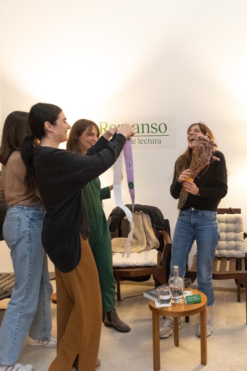 Al salir del desayuno y continuar nuestro viaje hacia el Hotel Fuenteaceña, a orillas del Duero, ya nos habíamos constituido como grupo: éramos Las Alcaldesas y así lo ratifica nuestro grupo de WhatsApp, activo a día de hoy. Nuestro vínculo no se limitó a un fin de semana —sigue activo— ni a un grupo de mensajes: otra vez la observación y la escucha nos llevó a lugares inesperados. Ya era sábado cuando recibimos a Laura Ferrero e iniciamos las actividades junto a ella: un rato de lectura, un grupo de conversación antes de comer, una comida deliciosa, un rato de lectura y un segundo círculo de conversación. Durante la comida, Laura Ferrero hizo un comentario que no recordamos bien, pero tenía que ver con un premio que no le habían dado. Y, en el tiempo libre de la tarde, decidimos que nuestra sororidad y recién forjada amistad bien merecían un premio para ella: la haríamos “Alcaldesa de honor”. Con las fajas sobrantes de los libros confeccionamos una banda de honor; con las flores sobrantes de la decoración del retiro, un pequeño ramo de flores. Y, con nuestra admiración, le preparamos una pequeña sorpresa al finalizar el encuentro lector: Laura Ferrero era nuestra primera galardonada, la primera Alcaldesa de honor. Los motivos para nombrarla alcaldesa, en realidad, nos sobraban.