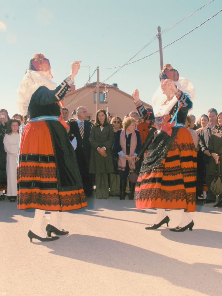 Algo mareadas, al bajar el puerto, decidimos que era el momento del desayuno y de asentar el cuerpo. Y ahí, de nuevo, el navegador nos llevó por una senda inesperada hasta la localidad de Zamarramala, a escasos kilómetros de la ciudad de Segovia. En la plaza preguntamos a dos vecinas dónde estaba el bar, no andábamos lejos. Mi hiperactividad visual hizo que me fijase en el nombre de la plaza: “Las Alcaldesas”. El restaurante al que nos dirigíamos se llamaba “La Alcaldesa”. Al entrar al bar y pedir los cafés, nos dimos cuenta de que gran parte de la decoración tenía que ver con una festividad, la de las alcaldesas, y preguntamos al dueño. Nos contó que cada año, el domingo siguiente al 5 de febrero —festividad de Santa Águeda—, un pequeño pueblo de Segovia se llena de color, historia y reivindicación con la Fiesta de las Alcaldesas de Zamarramala. Este evento, declarado Fiesta de Interés Turístico Nacional, es una celebración que pone a la mujer en el centro de la tradición y el poder, aunque sea por un día.