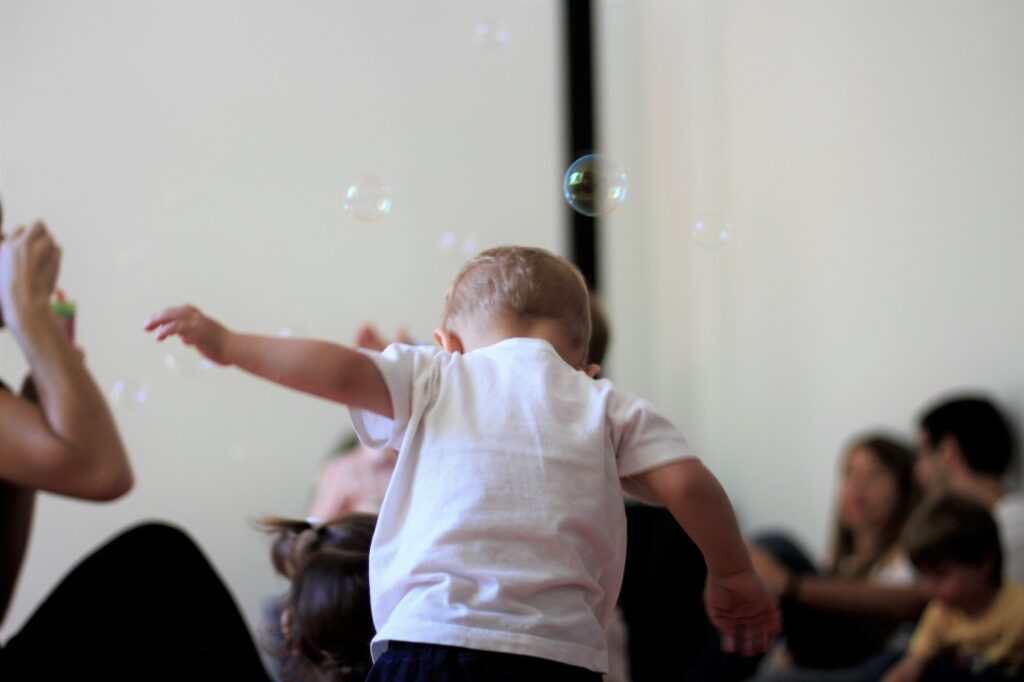Es un espacio de encuentro con mamá o papá donde compartir curiosas canciones, simpáticos recitados rítmicos y pequeñas danzas en un ambiente cálido, estético y sobre todo musical. El juego, la música y el ritmo propio de cada bebé serán los elementos esenciales que acompañarán el taller. Se trata de explorar aquellos sonidos, palabras y graciosas onomatopeyas e incorporarlos de manera respetuosa y divertida al contexto musical. Melodías y nanas invadirán el espacio y sucesivamente aparecerán materiales suaves y coloridos como pañuelos, pelotas blandas, huevos sonoros y pequeñas campanillas. ¡Disfrutar bailando junto a otras familias nunca fue tan divertido!