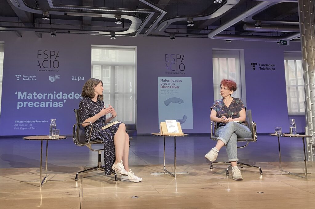El pasado miércoles 18 de mayo fue un día para recordar. El pasado miércoles un animado grupo de personas tuvimos la suerte de compartir con la periodista y escritora Diana Oliver la presentación de su libro Maternidades precarias (Arpa Editores, 2022) en el Espacio Fundación Telefónica. El pasado miércoles muchas de nosotras nos “desvirtualizamos” y nos pusimos cara y piel fuera de las pantallas de nuestros teléfonos, ordenadores y demás pantallas. Y fue genial. Me encantaría contar por qué.