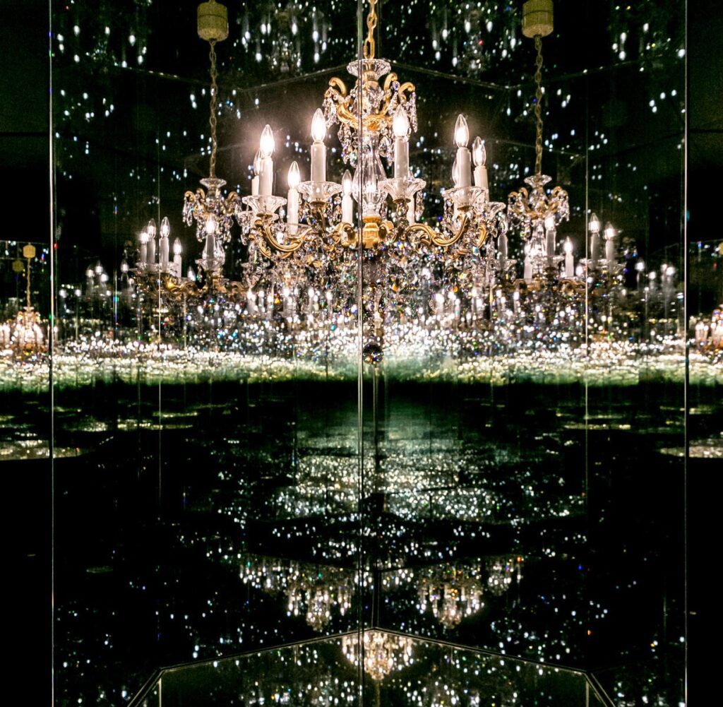 Es difícil elegir entre las dieciocho salas con instalaciones cuál es la favorita: todas ellas te transportan a distintos lugares a través de una experiencia multisensorial, pues además de ver, escuchar y sentirte inmersa en cada una de las experiencias, cada sala tiene su propio aroma. Así, pude disfrutar de Yayoi Kusama, una de las artistas contemporáneas más populares del mundo, expone en Wattens una de sus instalaciones de espejos infinitos más espectaculares, titulada Chandelier of Grief —Candelabro del Dolor—. El elemento central es una araña giratoria de cristal Swarovski, cuyo brillo cobra vida en una sala totalmente revestida de espejos. La sala crea la ilusión de estar en un espacio infinito. Una de las reflexiones que me surgió al disfrutar de estas Cámaras de las Maravillas —a las que es posible acceder con una audioguía personalizada y automática, que reconoce cada espacio en el que entras— es el nulo interés que demuestran muchos de los visitantes por entender y deleitarse con estas instalaciones: pude observar que la mayoría estaban más preocupados por encontrar el punto perfecto en el que hacerse un selfie —cada sala marca en el suelo, para más INRI, cuál es el punto ideal para hacerse la consabida foto— que de recibir los estímulos que cada artista proyectó en sus obras. Muy significativa fue esta experiencia en la citada instalación de Kusama: fuera de la cámara se avisaba de que la experiencia inmersiva sería perfecta cerrando la puerta corrediza que da acceso al espacio. Muy poca gente se paró a leerlo: entraban, daban la vuelta, se hacían una foto y salían. Gracias a estas prisas por retratarse y llegar pronto al siguiente retrato, pude encerrarme en la cámara y entrar con total comodidad y atención en la propuesta de espacio infinito de la artista japonesa.